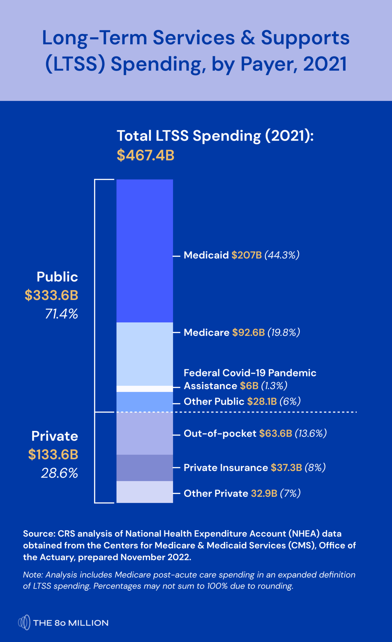 Medicaid is the primary payer of LTC, and those costs make up a disproportionate share of spending
